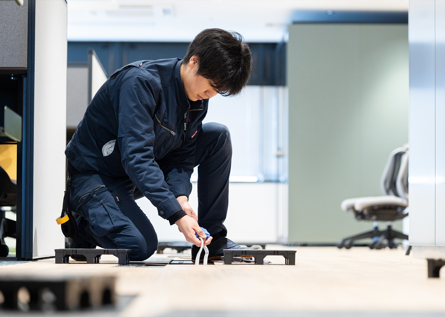 まずは、先輩社員の現場に同行し、電気通信工事や電気工事の実務に携わって頂きます。
